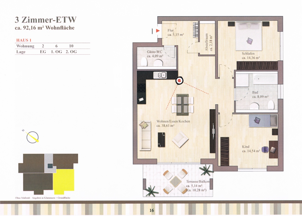 Immobilienpräsentation » Übersicht » Eigentumswohnungen » H1-ETW-3-Zimmer-Kat-A « Zurück H1-ETW-3-Zimmer-Kat-A Im Haus 1: Wohnungen Nr. 2, 6, 10 Wohnfläche: ca. 92,16m² Einen Grundriss und Raumaufteilung der Wohnungen 2, 6, 10 finden sie in der PDF-Datei Downloads: Filtern